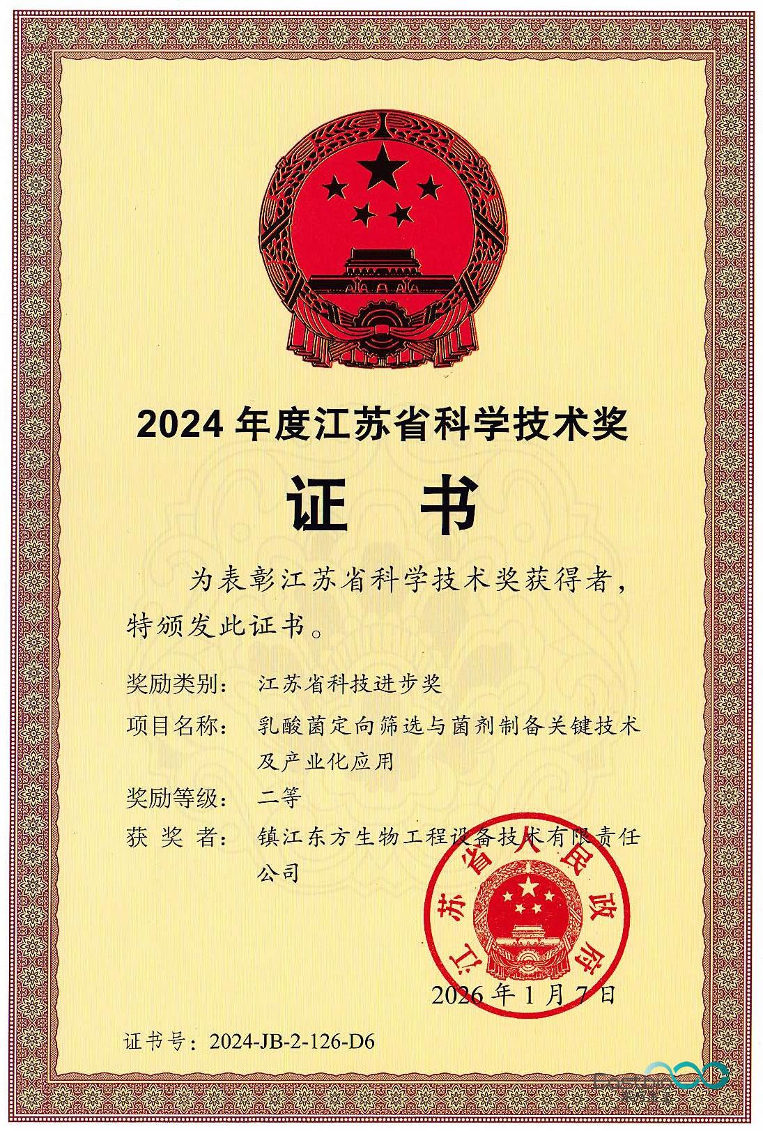 东方生工获得2024年度江苏省科技进步奖二等奖